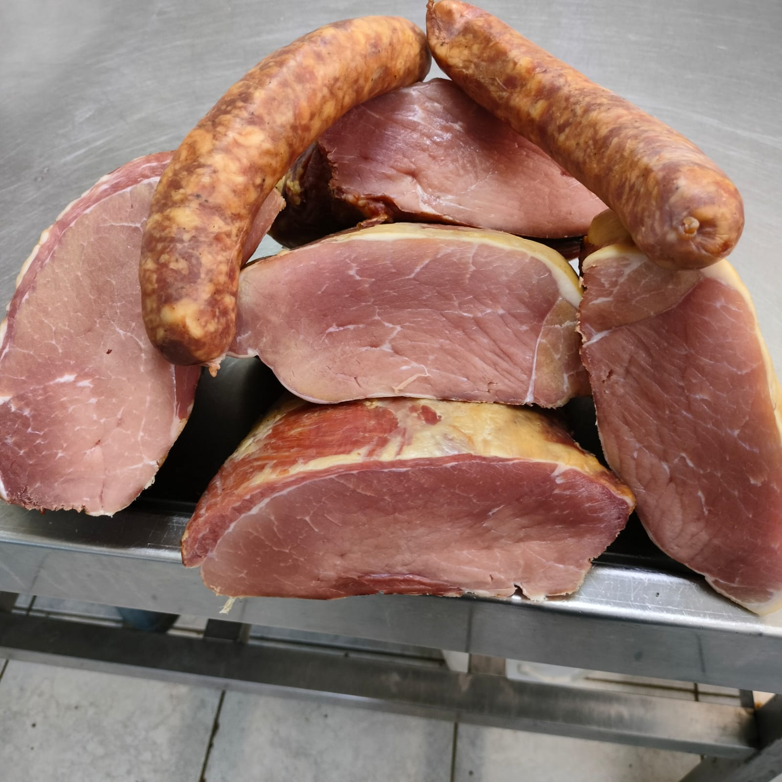Vse mesnine so pridelane iz lastne reje. Naši pujski so rojeni in vzrejeni izključno na naši kmetiji, hranjeni z doma pridelanimi žiti in koruzo – brez uvoza, brez neznanega izvora. To pomeni, da lahko z gotovostjo rečemo: v vsakem grižljaju boste okusili domačnost in varnost.